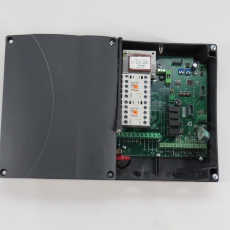 Motor para puertas correderas de uso intesivo para residencial, comunitario o industrial. Modelo 24Vdc con equipo electrónico y receptor integrado para puertas con un peso de hasta 800 kg. Desbloqueo con palanca para accionamiento manual. Sistema de sujección basculante Patentado, que absorbe las deformaciones de la puerta y facilita el montaje..